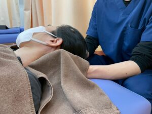また、姿勢の矯正も行い首肩にかかる負担を改善していきます。