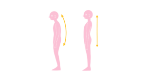猫背の姿勢は身体の前側の筋肉が縮み、身体の後ろ側の筋肉が伸びた状態です。